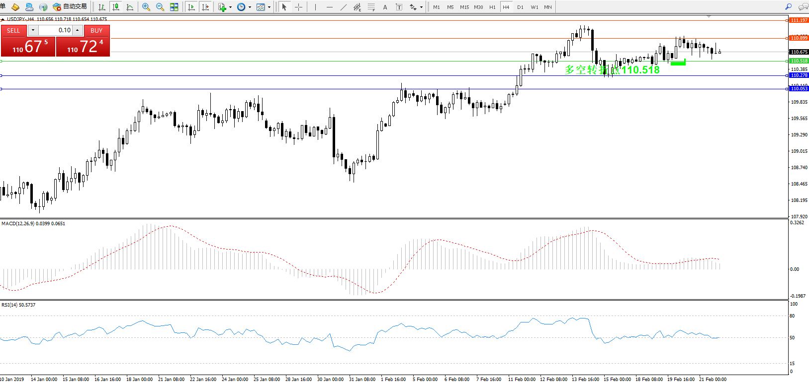 交易策略:110.518上方看涨,目标110.899111.197