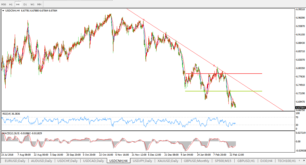 美元兑人民币USDCNH  4小时图: