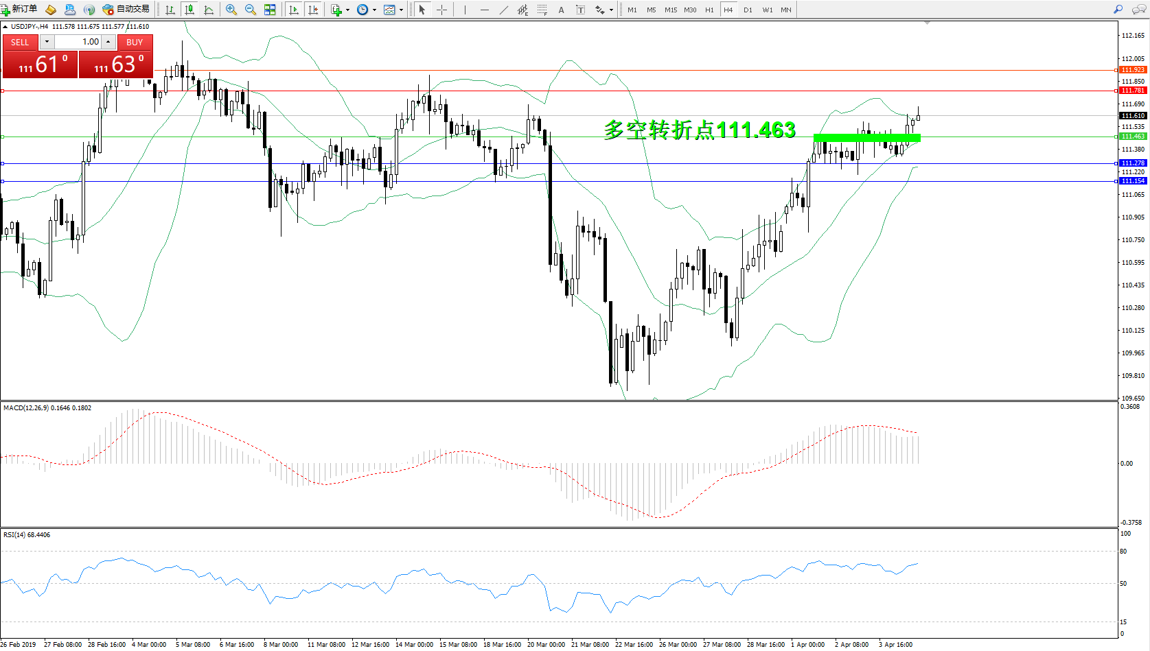 交易策略:111.463上方看涨,目标111.781、111.923