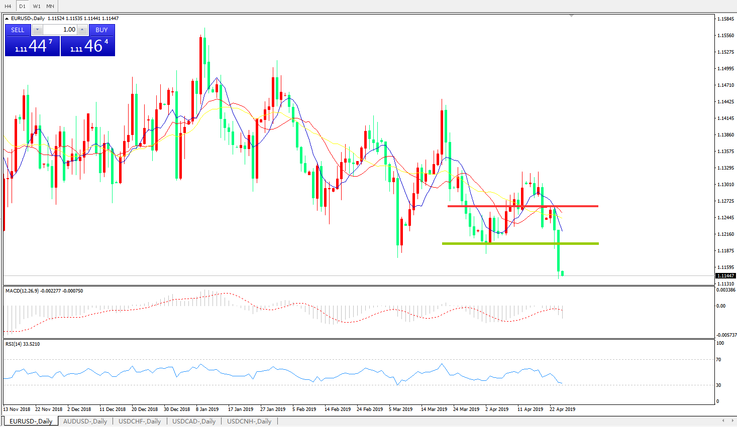 技术面简析:日图均线呈有序空头排列,汇价跌破前期低点快速下行,MACD在0轴下方运行且动能柱快速放量,RSI快速走低,下行空间打开,预计汇价将进一步走低。
