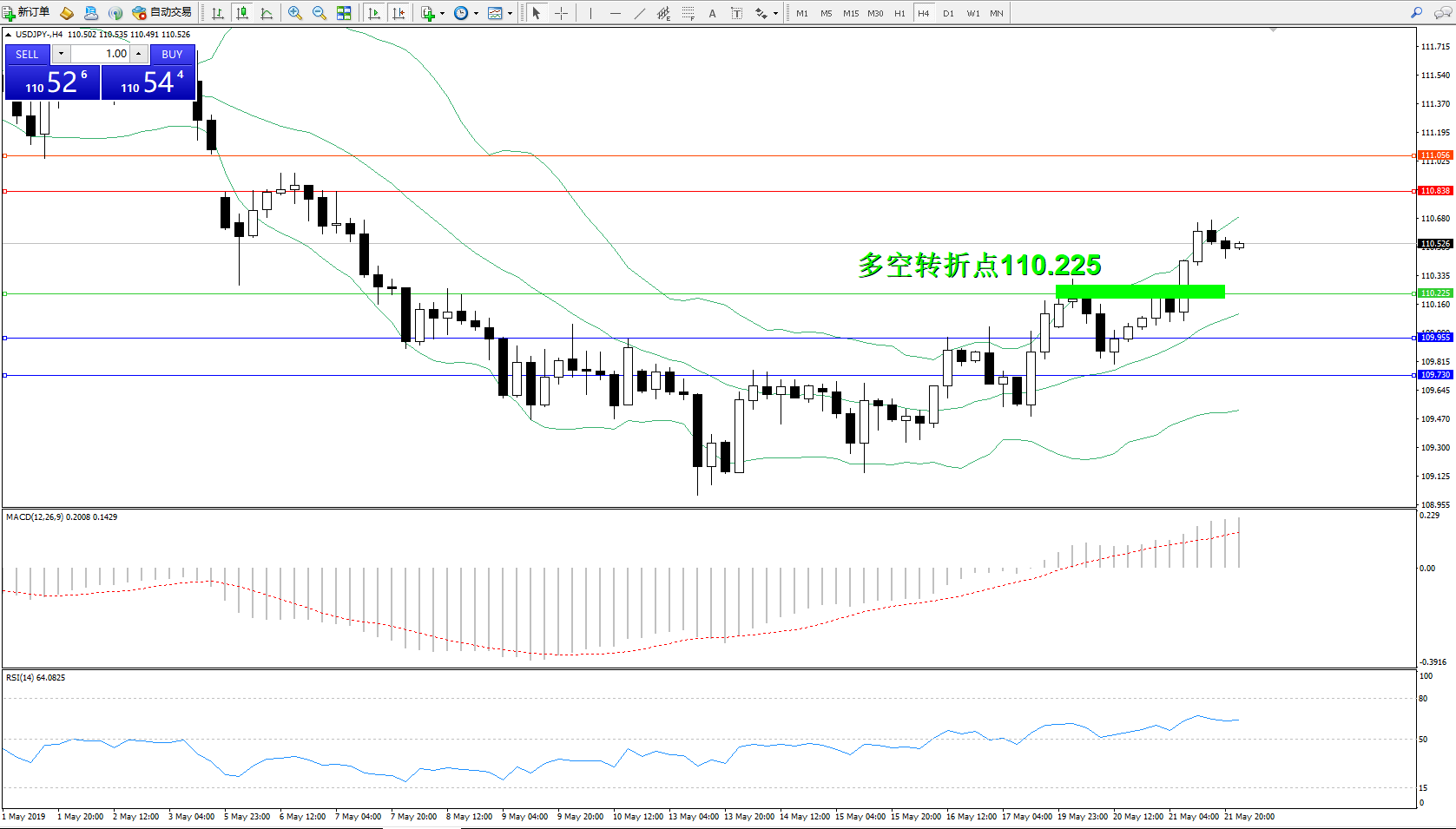 交易策略:110.225上方看涨,目标110.838111.056