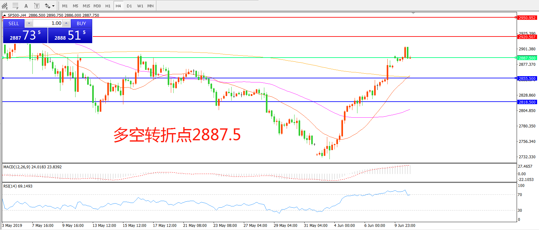 多空转折点:2887.50