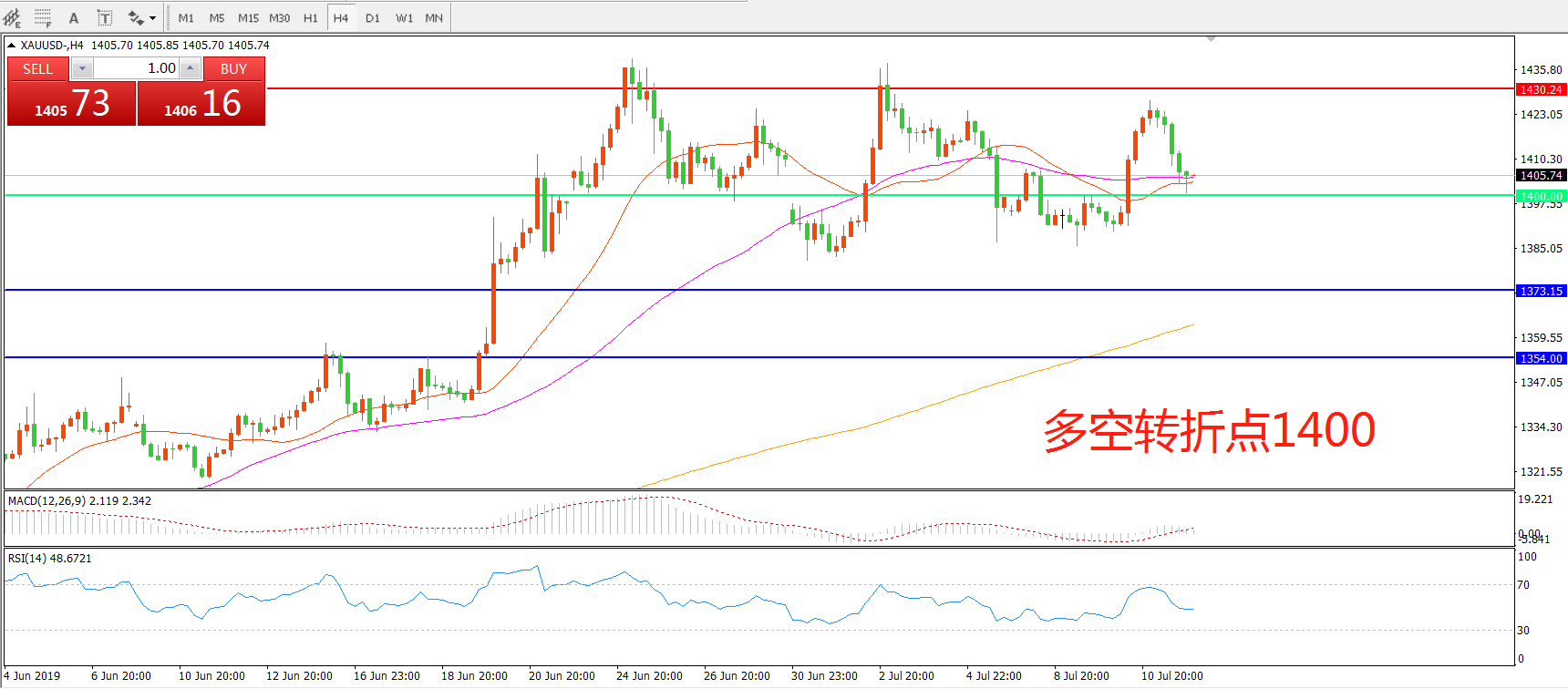 多空转折点:1400.00