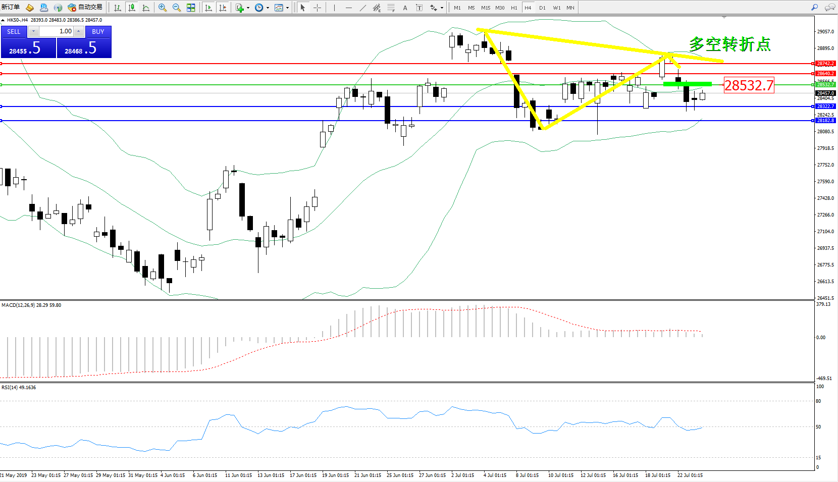 恒指HK50 ——4小时K线图显示: