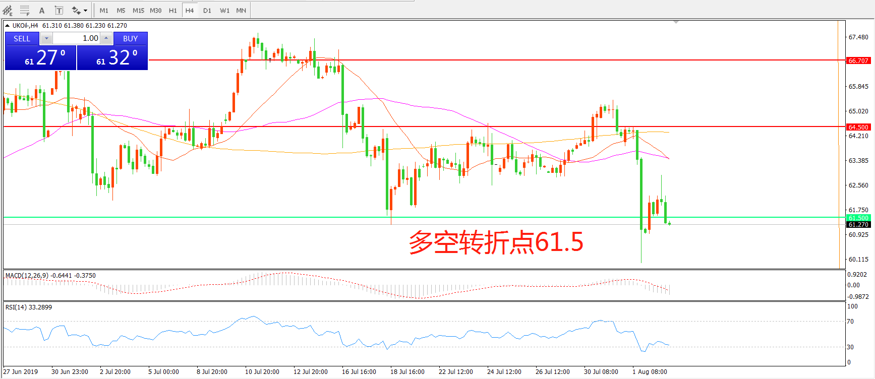 多空转折点:61.50