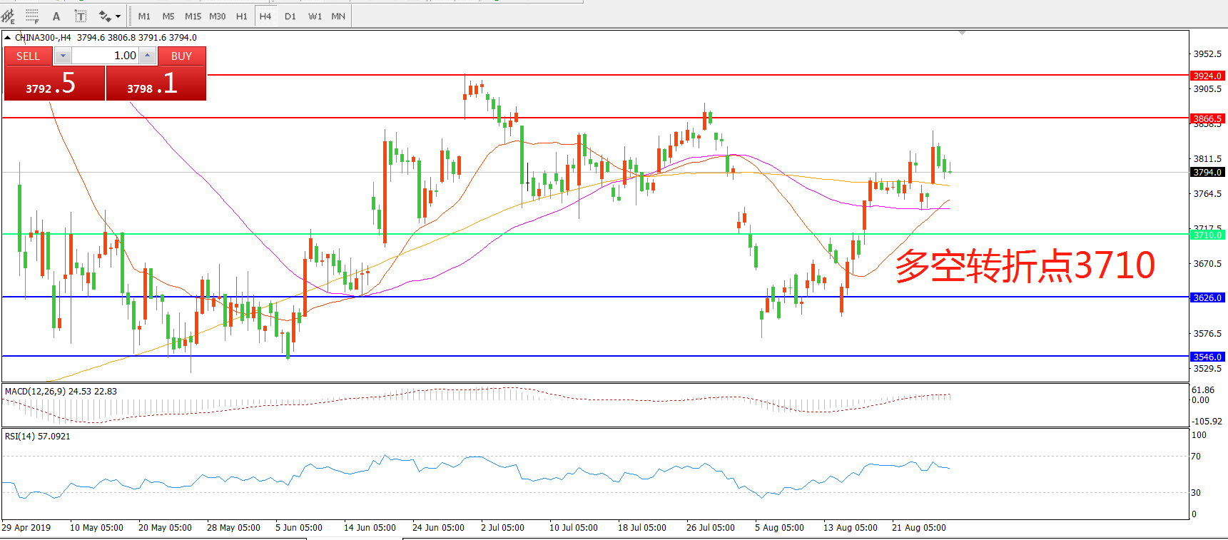 多空转折点:3710.00