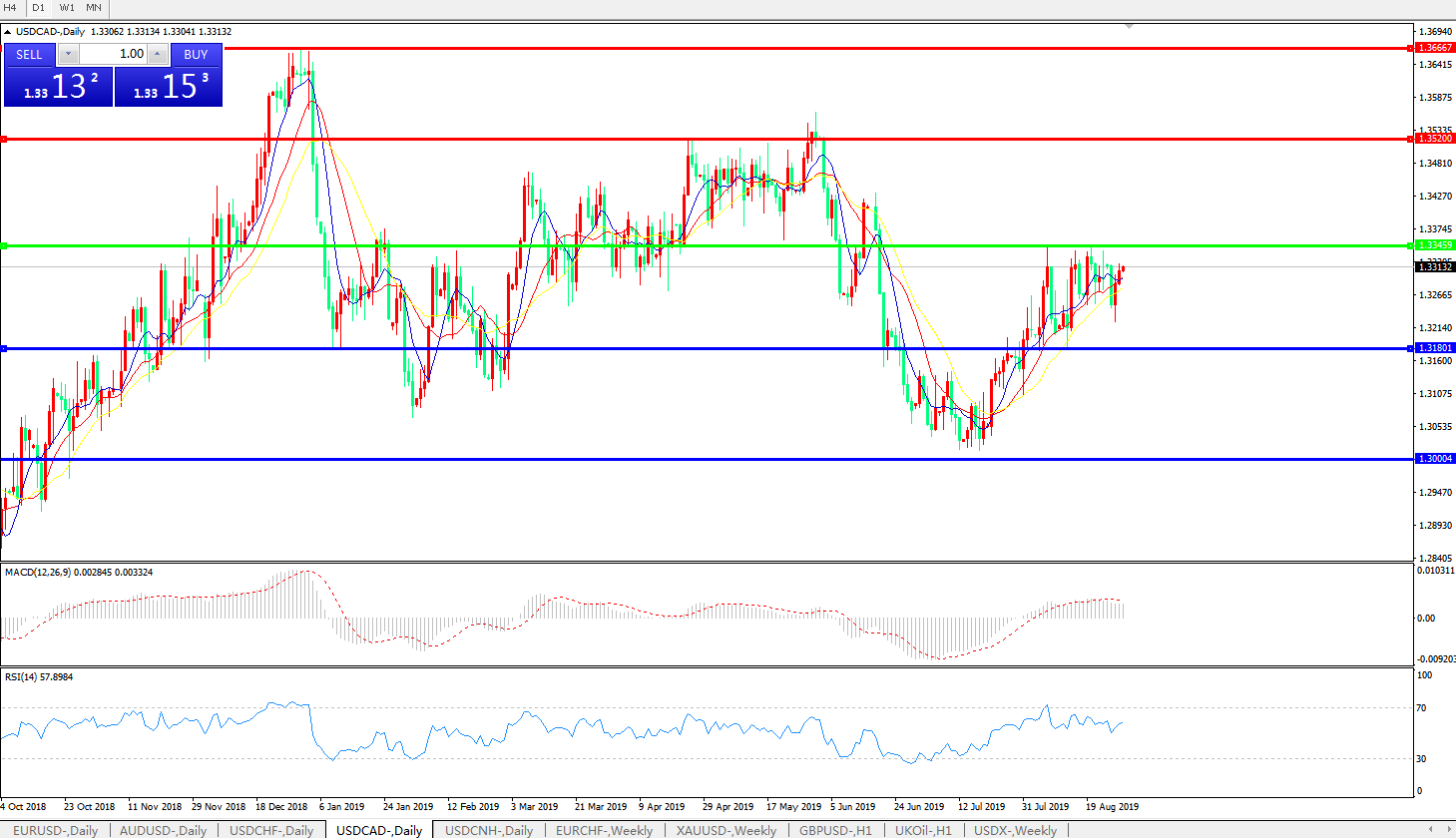美元兑加元USDCAD    日线