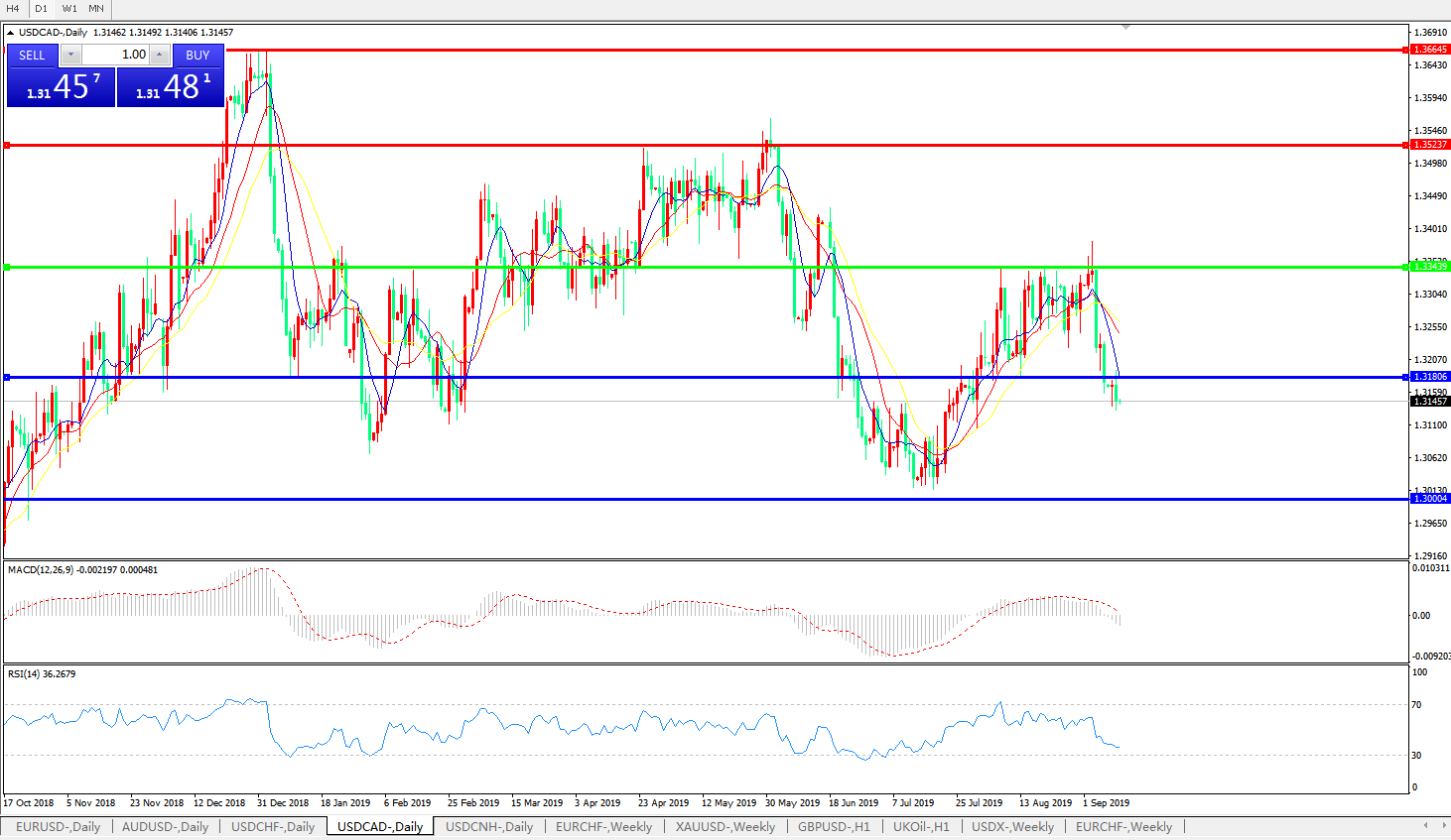 美元兑加元USDCAD    日线