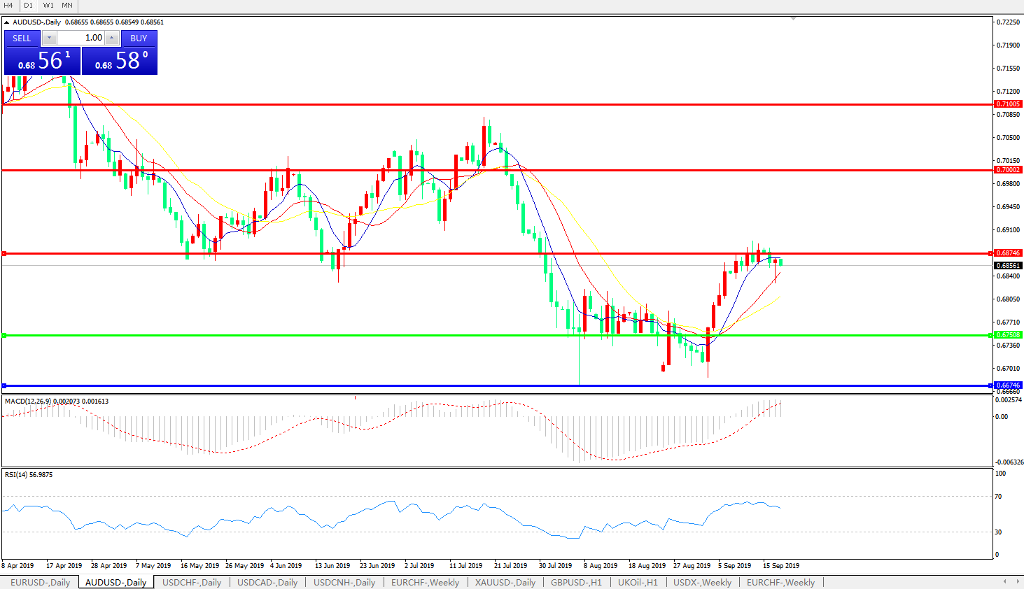 澳元兑美元AUDUSD 日线图: