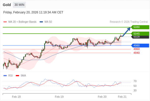 在 4980 之上,看涨,目标价位为 5045 ,然后为 5080 。