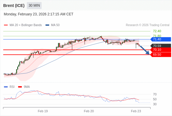交易策略: 在 71.40 之下,看跌,目标价位为 70.10 ,然后为 69.50 。