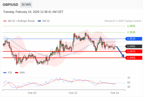 在 1.3515 之下,看跌,目标价位为 1.3475 ,然后为 1.3455 。