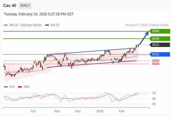 在 8262 之上,看涨,目标价位为 8690 ,然后为 8890 。