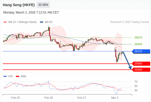 在 26215 之下,看跌,目标价位为 25800 ,然后为 25600 。