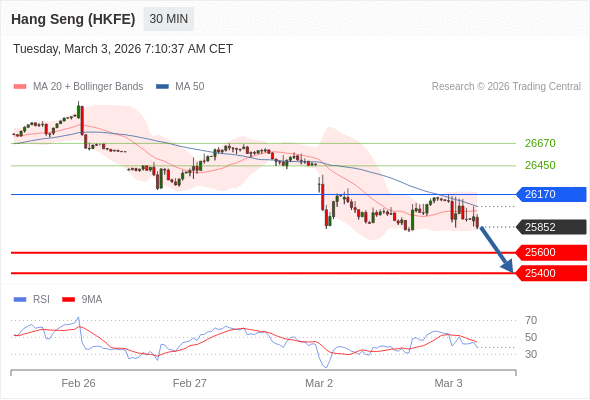 香港恒生指数期货 当日内: 目标位为25400。