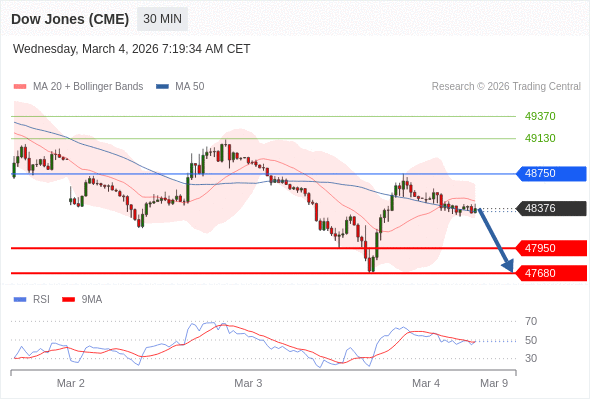 在 48750 之下,看跌,目标价位为 47950 ,然后为 47680 。