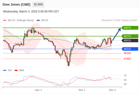 在 48310 之上,看涨,目标价位为 48770 ,然后为 49075 。