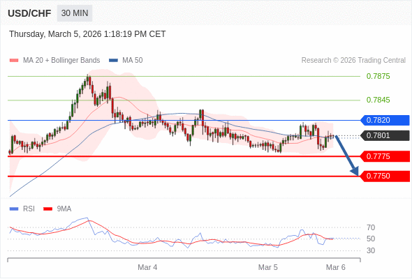 在 0.7820 之下,看跌,目标价位为 0.7775 ,然后为 0.7750 。