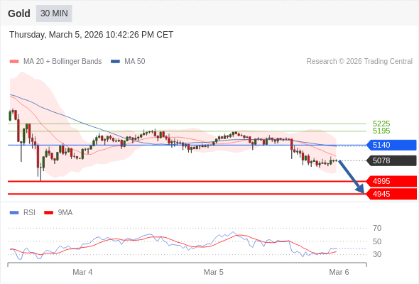 在 5140 之下,看跌,目标价位为 4995 ,然后为 4945 。