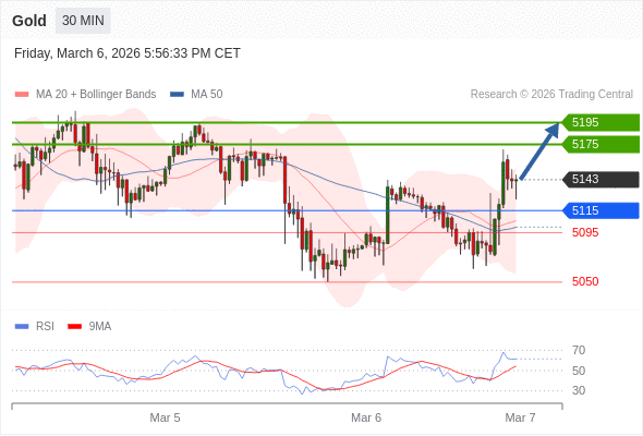 在 5115 之上,看涨,目标价位为 5175 ,然后为 5195 。
