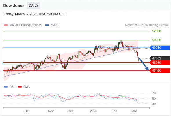 Dow Jones 短线: 存在压力。