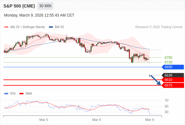 在 6690 之下,看跌,目标价位为 6610 ,然后为 6575 。