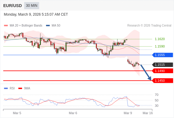 在 1.1555 之下,看跌,目标价位为 1.1490 ,然后为 1.1450 。