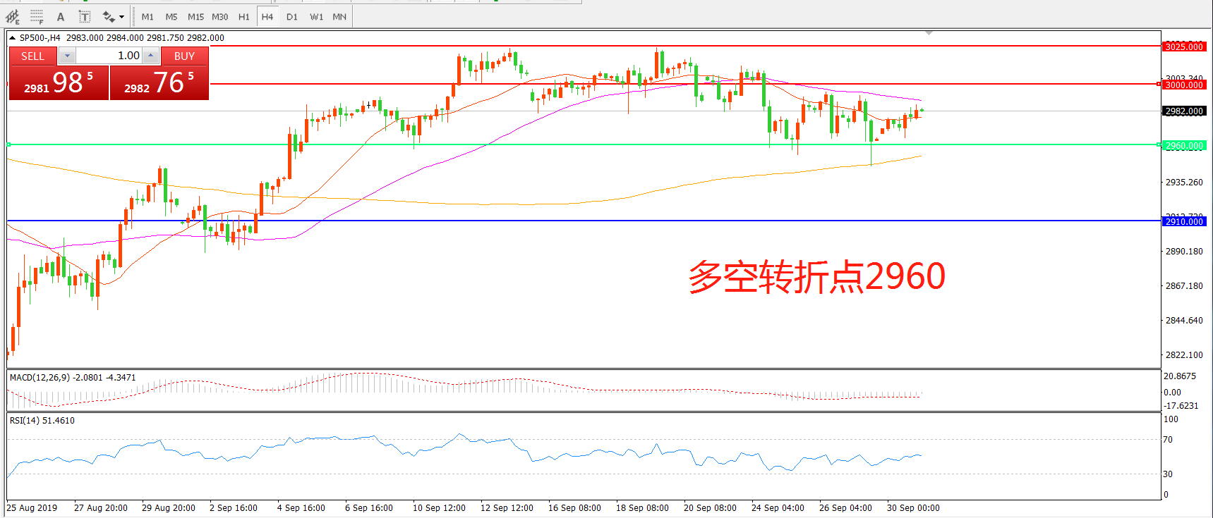多空转折点:2960.00
