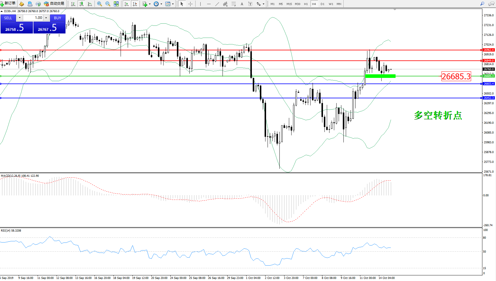 交易策略:26685上方看涨,目标26849、26962