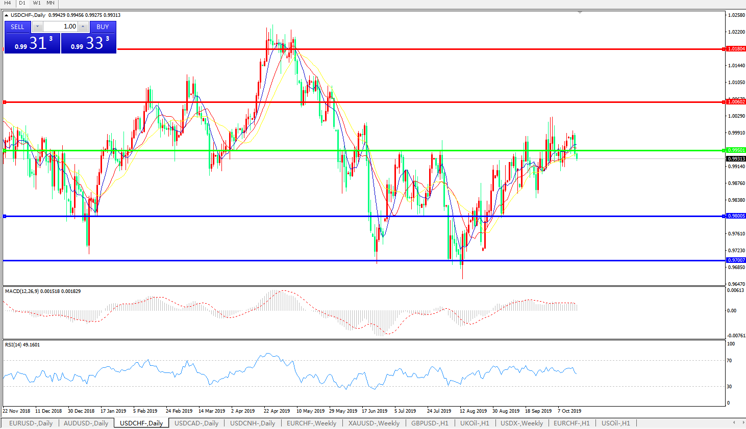 交易策略:0.9950下方看跌,目标0.98000.9700
