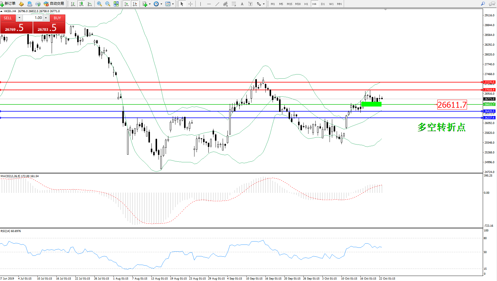 香港恒生指数1022日(周二)收盘上涨60.52点,涨幅0.23%,报26786.20点;港股早上小幅高开后再小量向上,恒指最多升118点,高见26844。高位见沽压回落,曾倒跌27点,续在升跌附近横行。缩量上涨对恒指而言并非坏事,主要表明市场仍处于观望状态,但入市的意愿较为强烈。投资者观望外围局势的变化,及静待联储局月底减息。市场观望的气氛较为浓厚,预计恒指会继续出现窄幅震荡格局。
