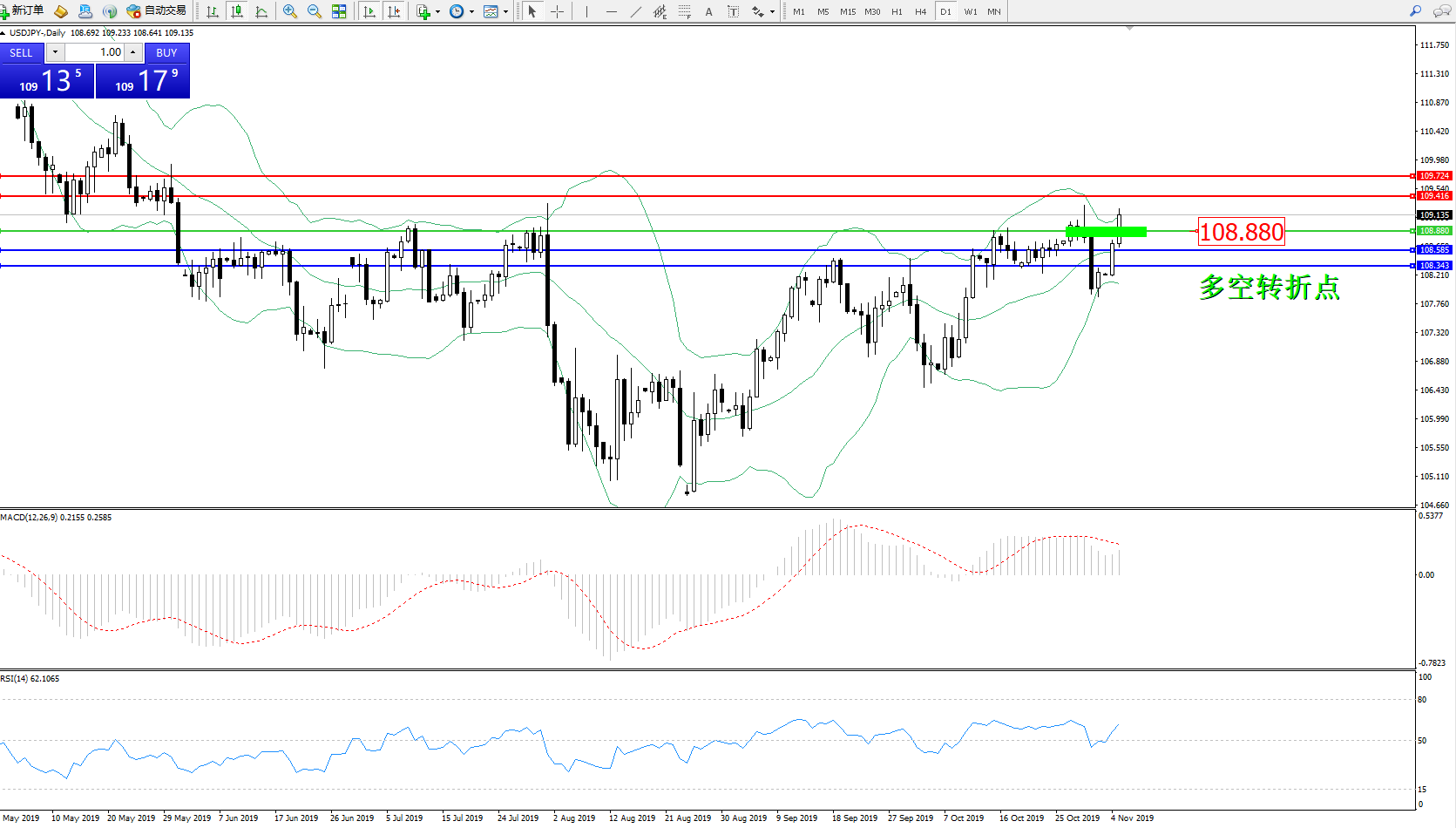 避险货币日元下滑,贸易情绪乐观提振了风险偏好,并促使投资者转向寻求较高收益货币。美元兑日元涨0.53%至109.16,创9月25日以来最大涨幅;日元跑输大盘,受美债收益率攀升和薪酬结算日(这一天通常会引发进口商的美元需求)拖累。不断增长的贸易协议乐观情绪在本周继续推动美国10年期公债收益率上涨,基金多头受此鼓舞,力推美元兑日元升穿109的水平。