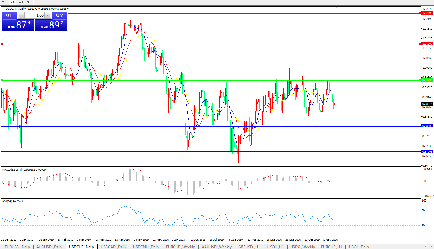 美元兑瑞郎USDCHF 日线图: