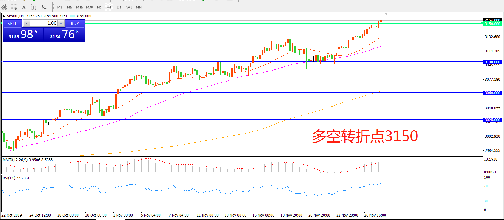 多空转折点:3150.00