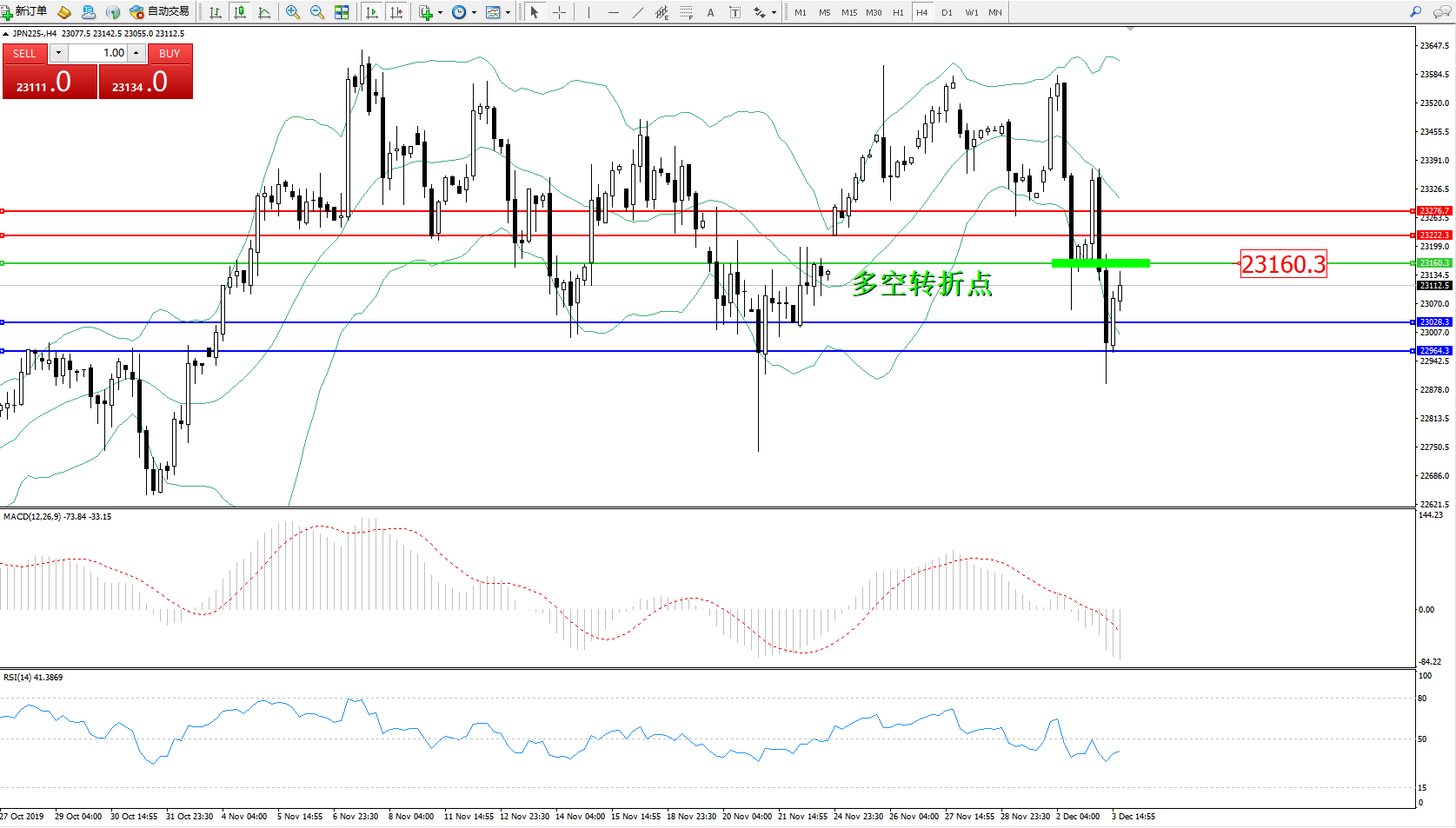 日经指数JPN225——4小时K线图: