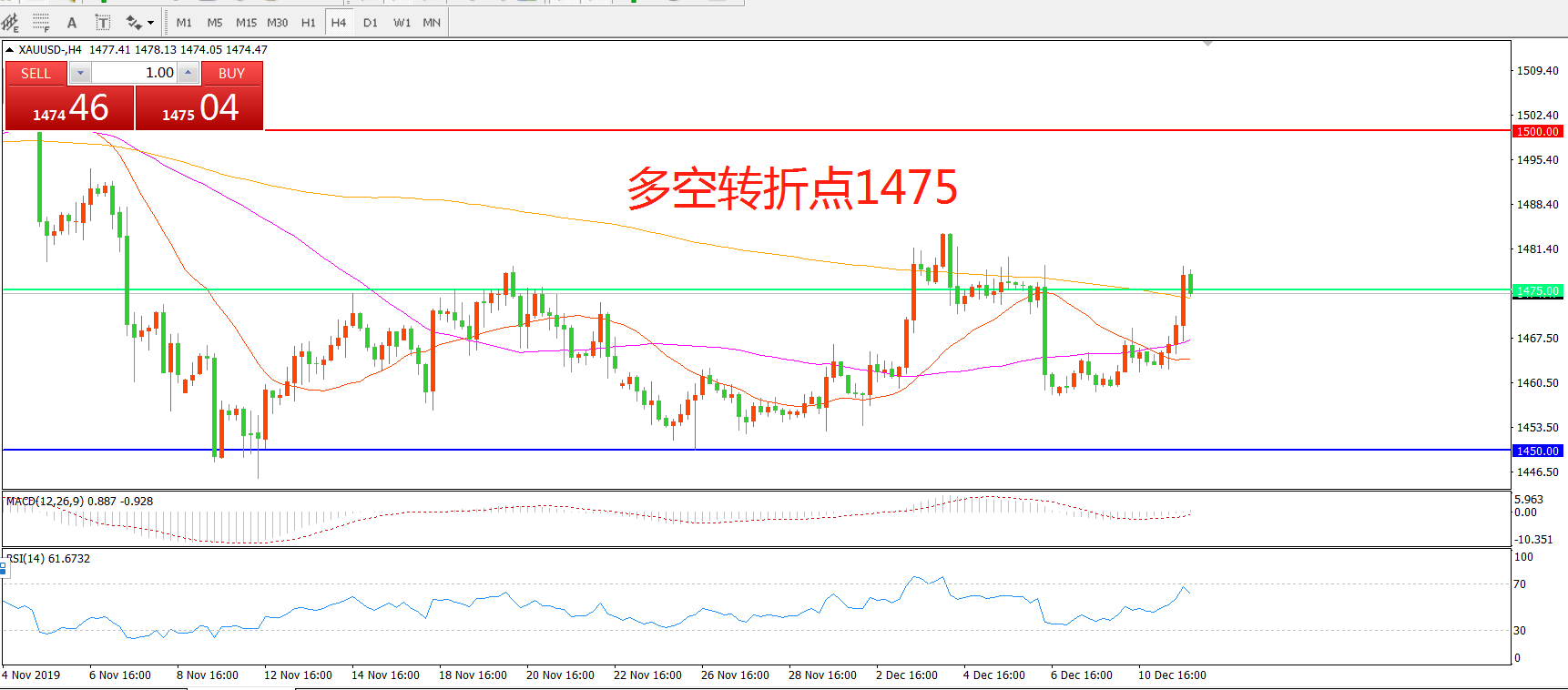 多空转折点:1475.00
