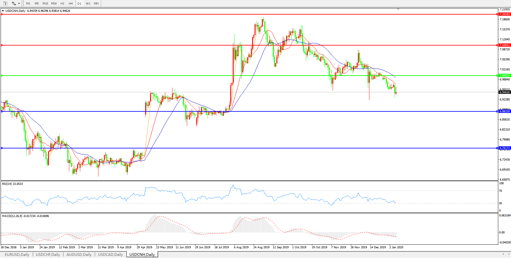 美元兑人民币USDCNH    日线图: