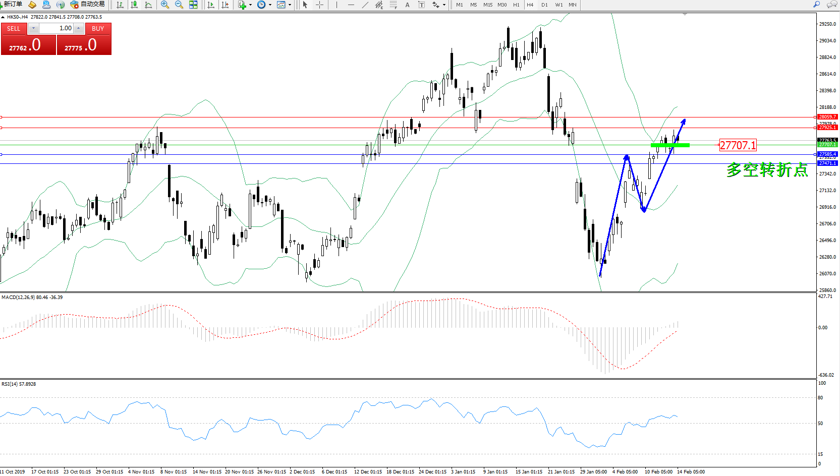 恒指HK50 ——4小时K线图显示: