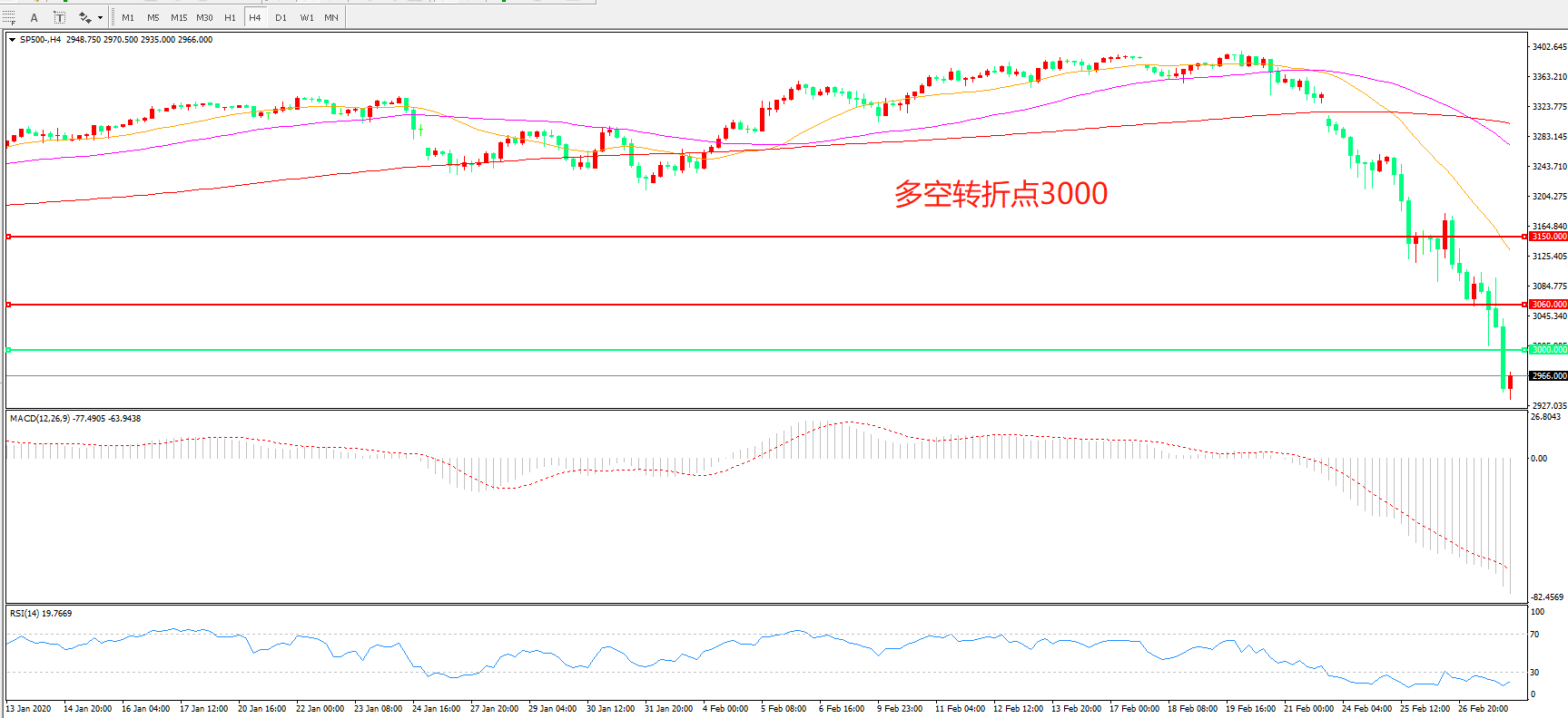 多空转折点:3000.00