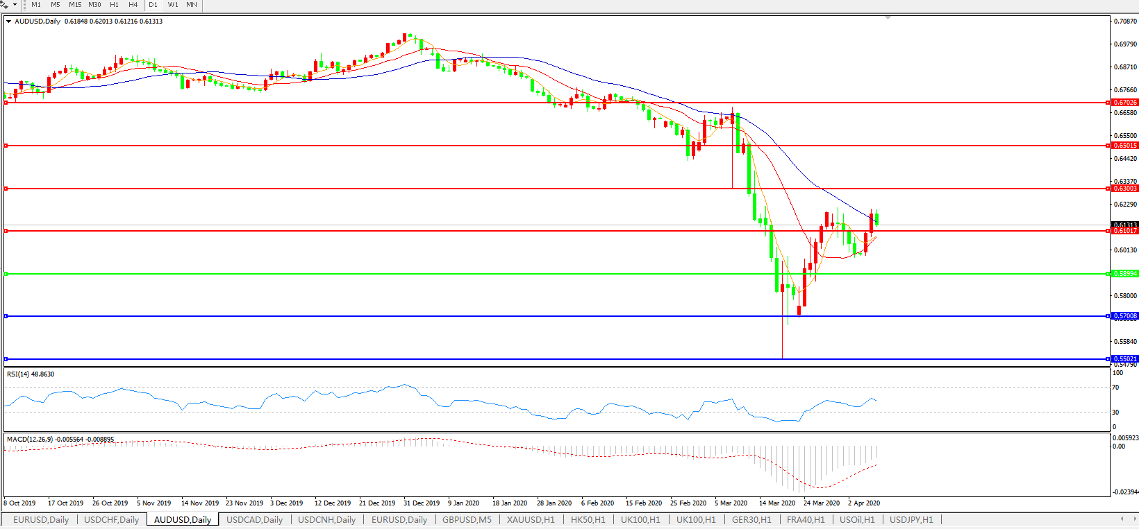 澳元兑美元AUDUSD 日线图: