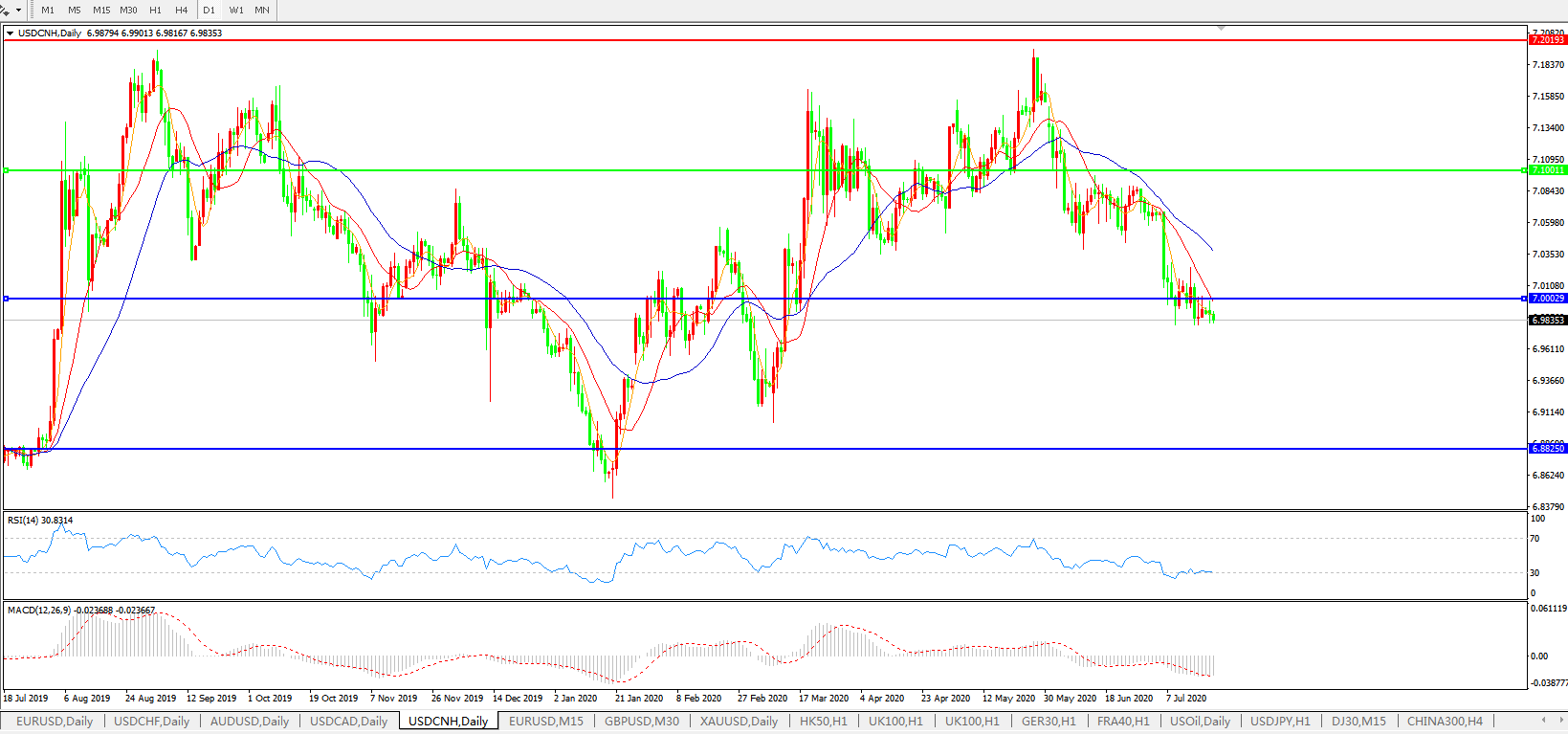 美元兑人民币USDCNH    日线图: