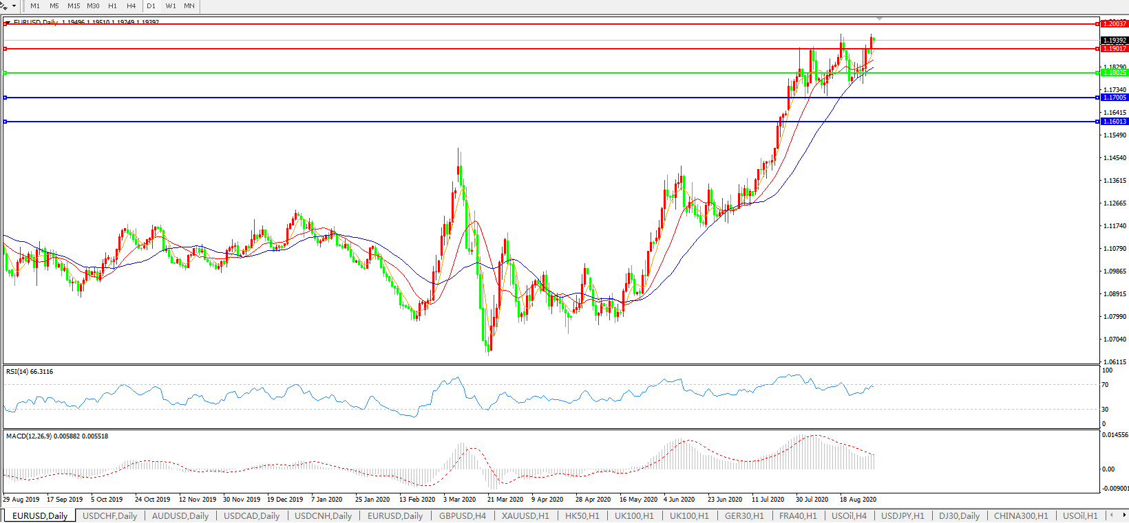 欧元兑美元EURUSD 日线图: