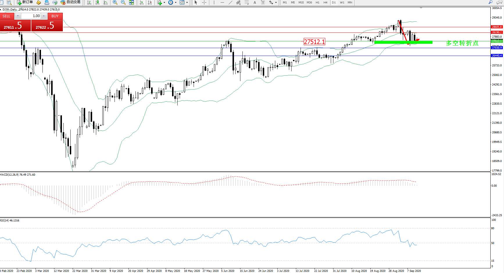 道琼斯指数DJ30—— 日K线图显示: