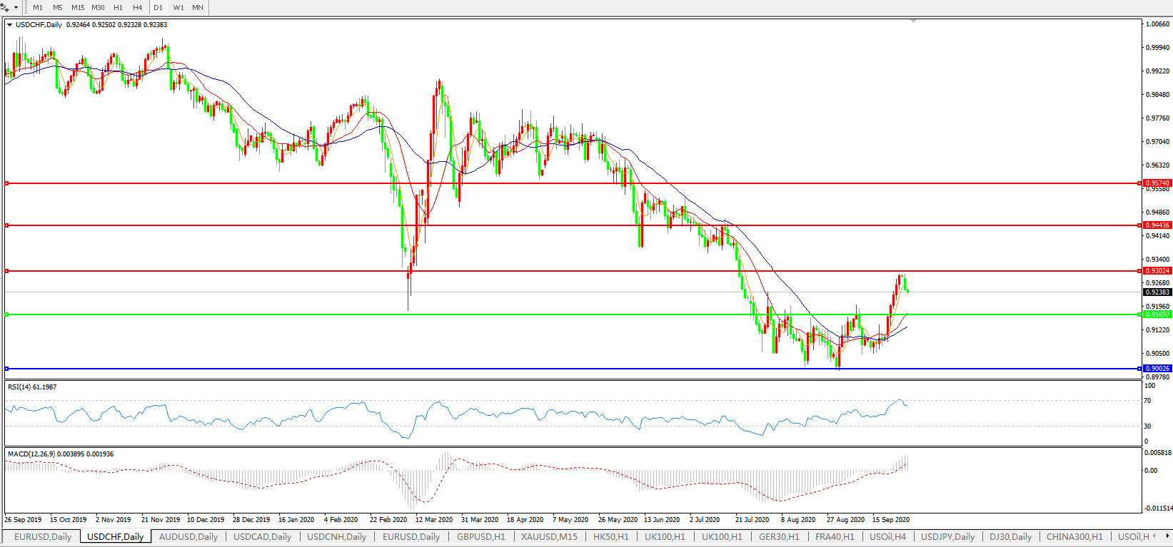 交易策略:0.9170上方看涨,目标0.9300、0.9440