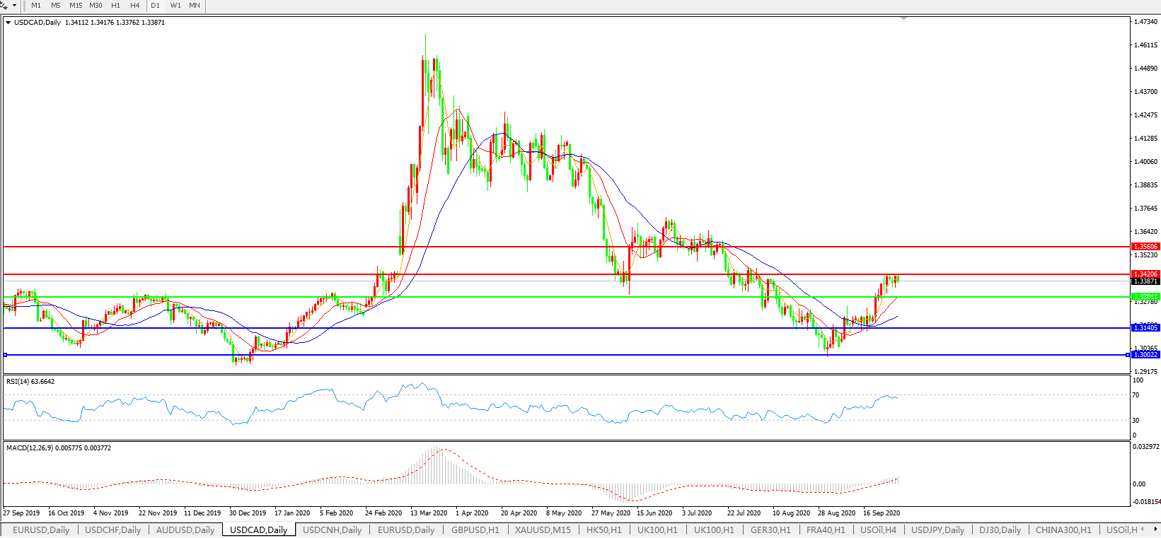 美元兑加元USDCAD 日线图: