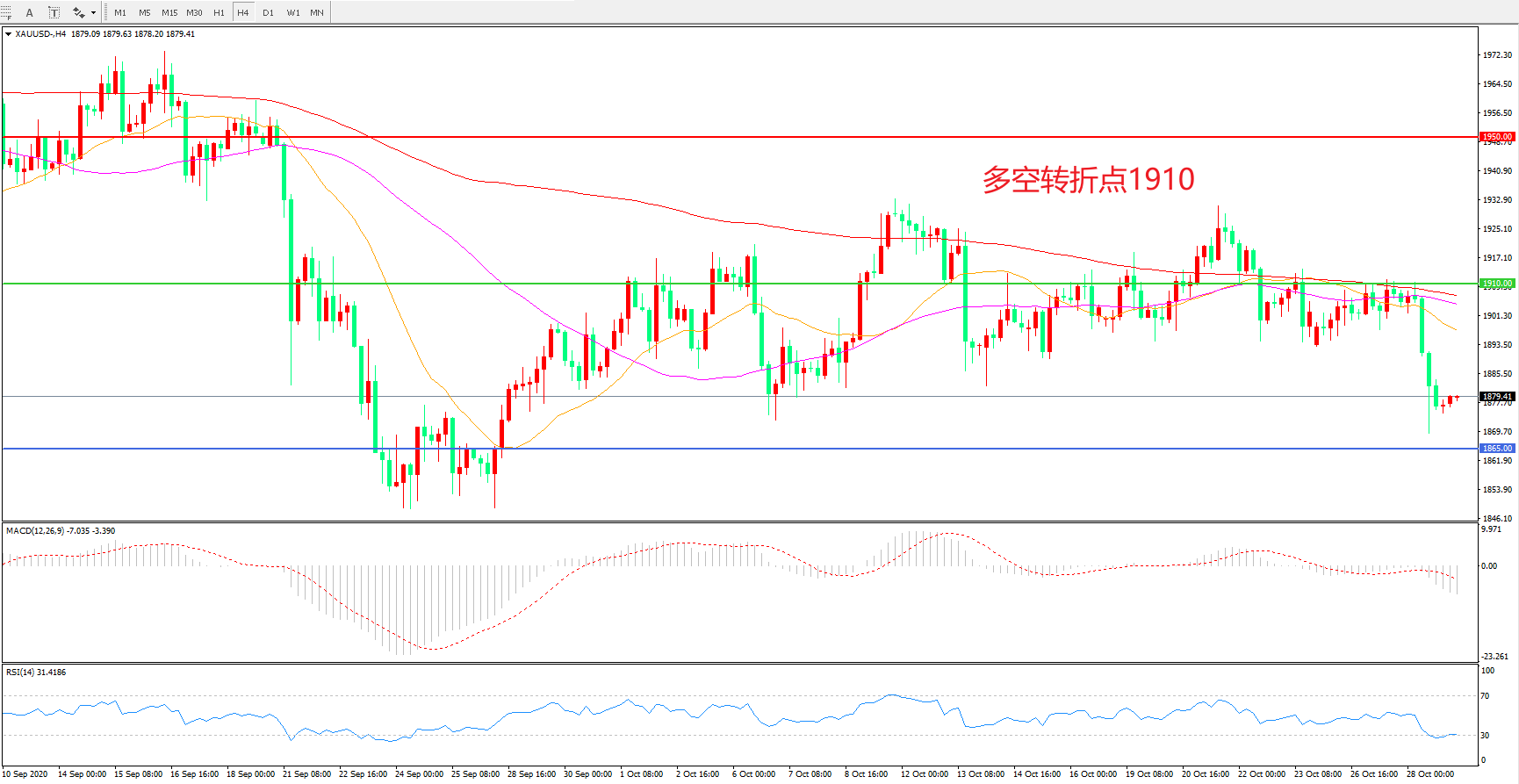 多空转折点:1910.00