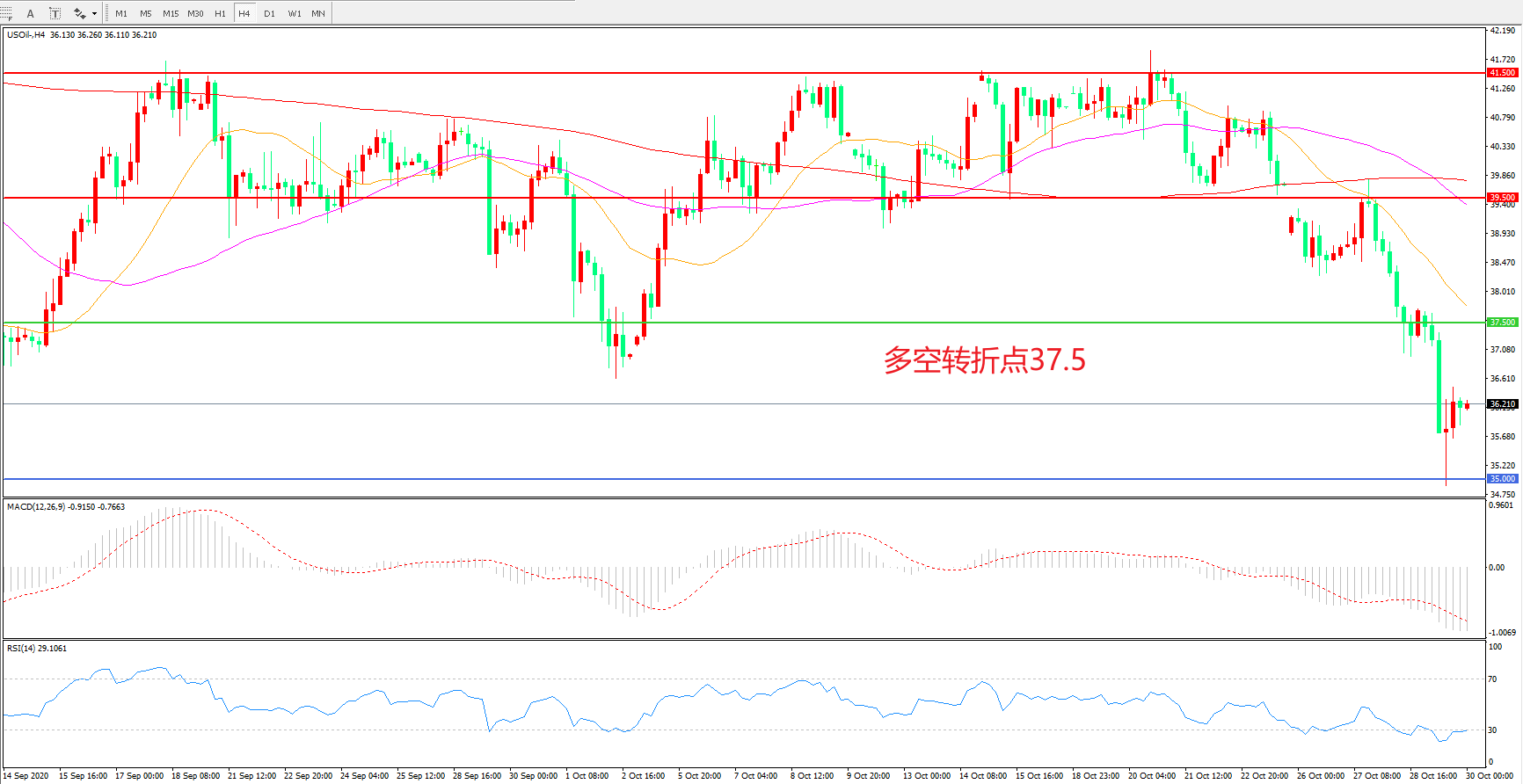 多空转折点:37.50