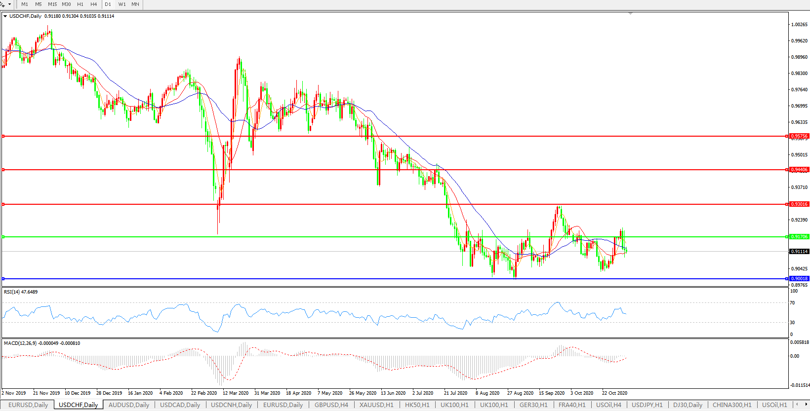 美元兑瑞郎USDCHF 日线图: