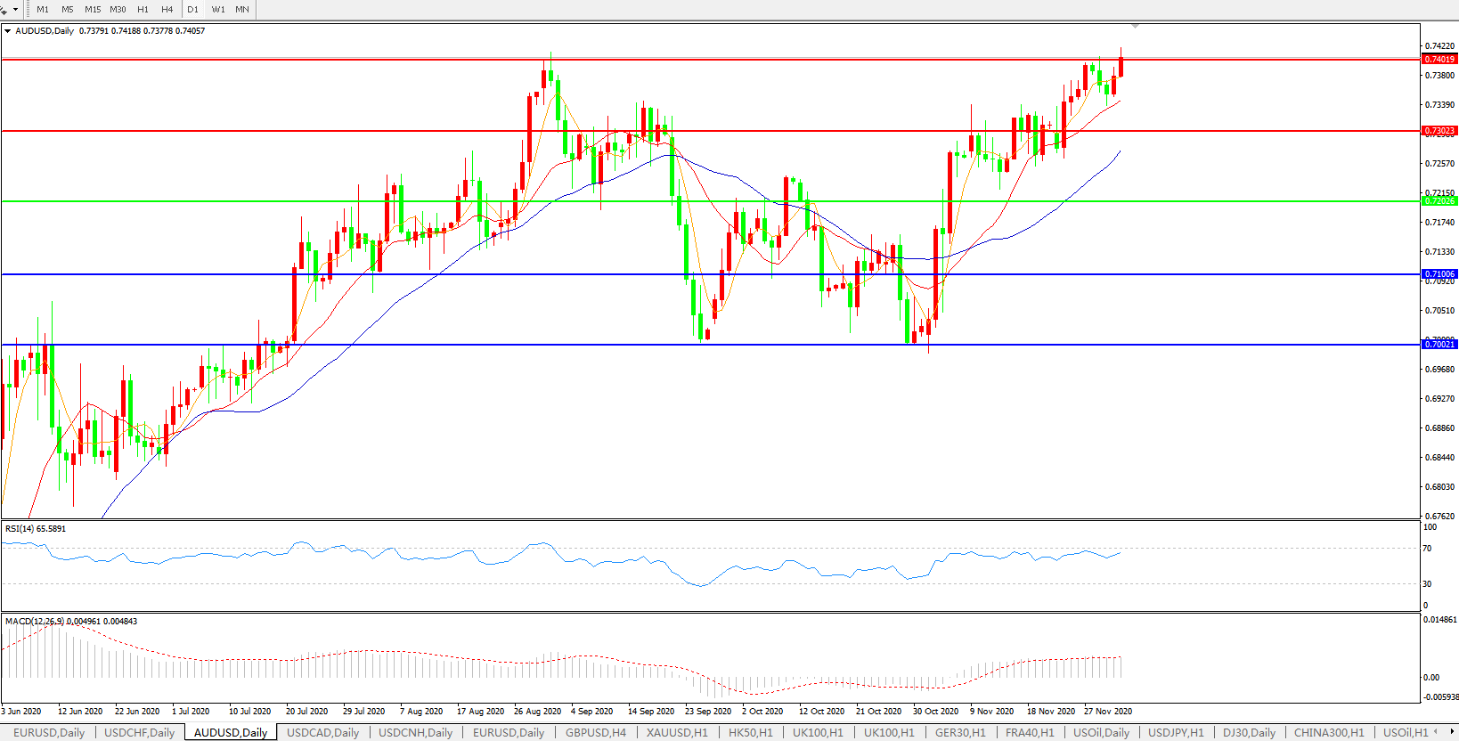 澳元兑美元AUDUSD    日线图:
