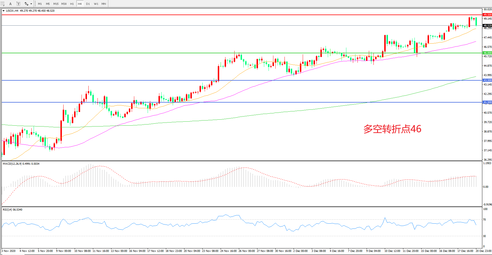交易策略:在46.00之上看涨,目标49.50 53.00